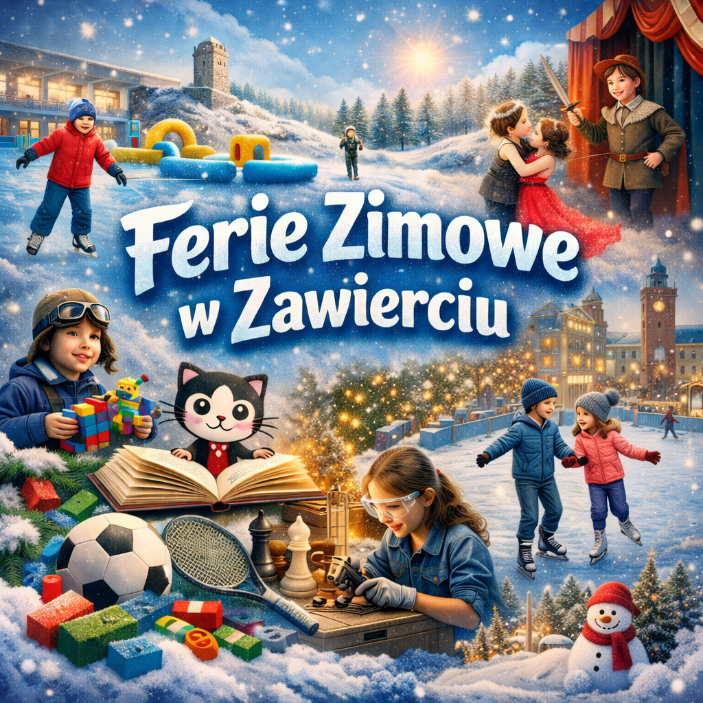 Zbliżające się wielkimi krokami ferie zimowe 2026 w Zawierciu zapowiadają się wyjątkowo intensywnie i różnorodnie. Ośrodek Sportu i Rekreacji, Miejski Ośrodek Kultury „Centrum”, Galeria Stara Łaźnia, Miejska i Powiatowa Biblioteka Publiczna, a także lokalne instytucje i organizacje przygotowały bogaty program zajęć, warsztatów i wydarzeń dla dzieci oraz młodzieży.