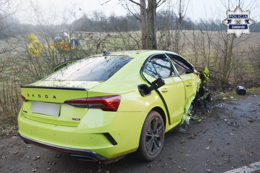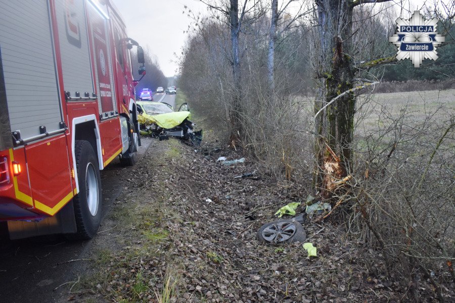 Jak wynika ze wstępnych ustaleń zawierciańskiej policji, kierujący samochodem marki Skoda jechał w kierunku Piaseczna. Na odcinku drogi przebiegającym przez łuk i wzniesienie kierowca stracił panowanie nad pojazdem. Auto zjechało do rowu, a następnie z dużą siłą uderzyło w drzewo. W chwili zdarzenia w skodzie podróżowały cztery osoby: 40-letni kierowca oraz trzech pasażerów.