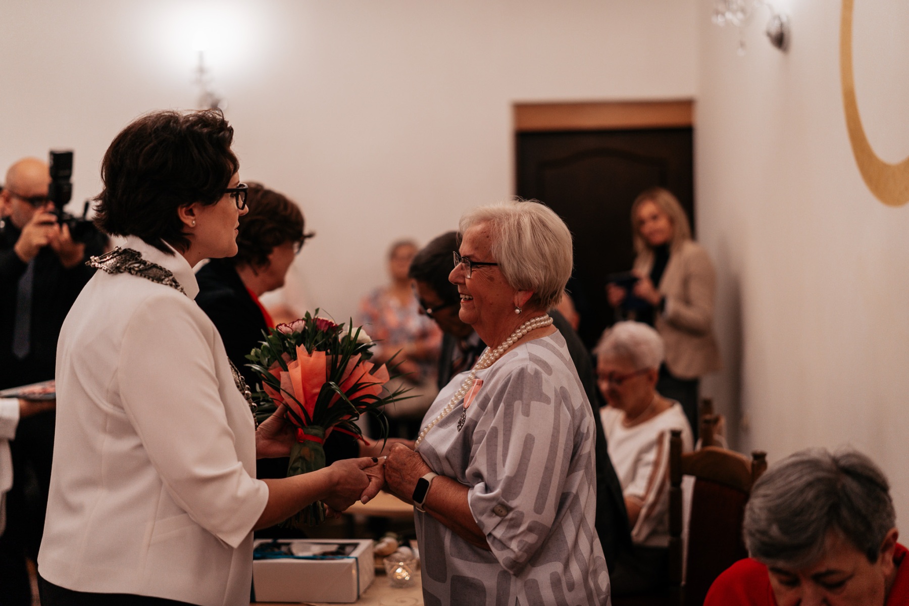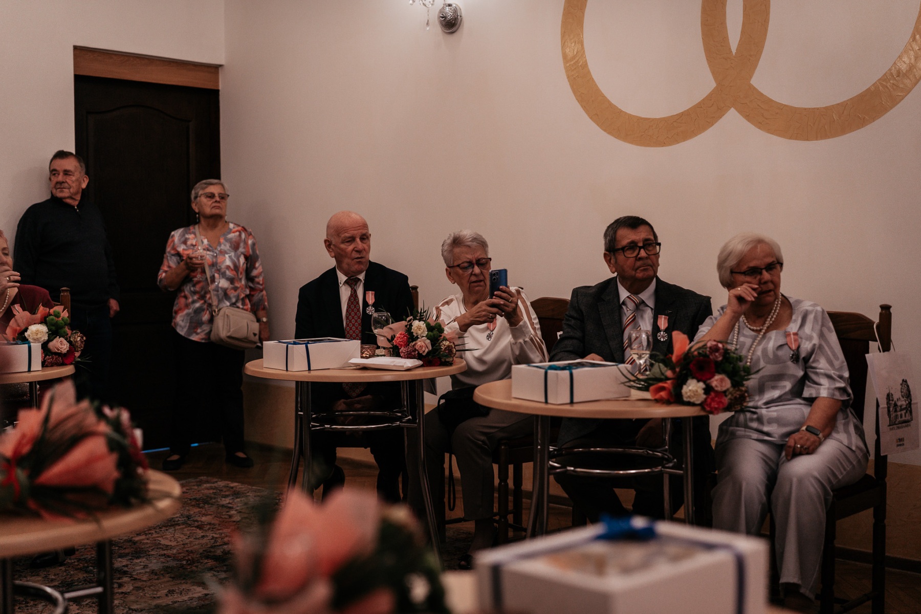 Równie ciepłe słowa skierowała do par kierowniczka USC, Anna Furgac, która wręczyła medale oraz pamiątkowe dyplomy, wyrażając uznanie dla wszystkich par za ich wieloletnie poświęcenie, cierpliwość i wzajemną troskę. Każda z par otrzymała również kwiaty oraz symboliczne upominki przygotowane przez Urząd Stanu Cywilnego.