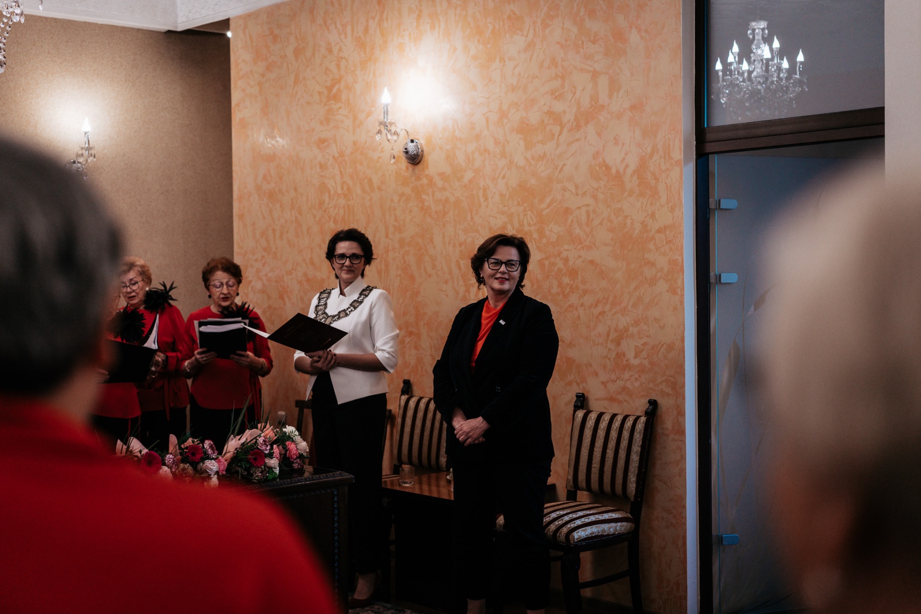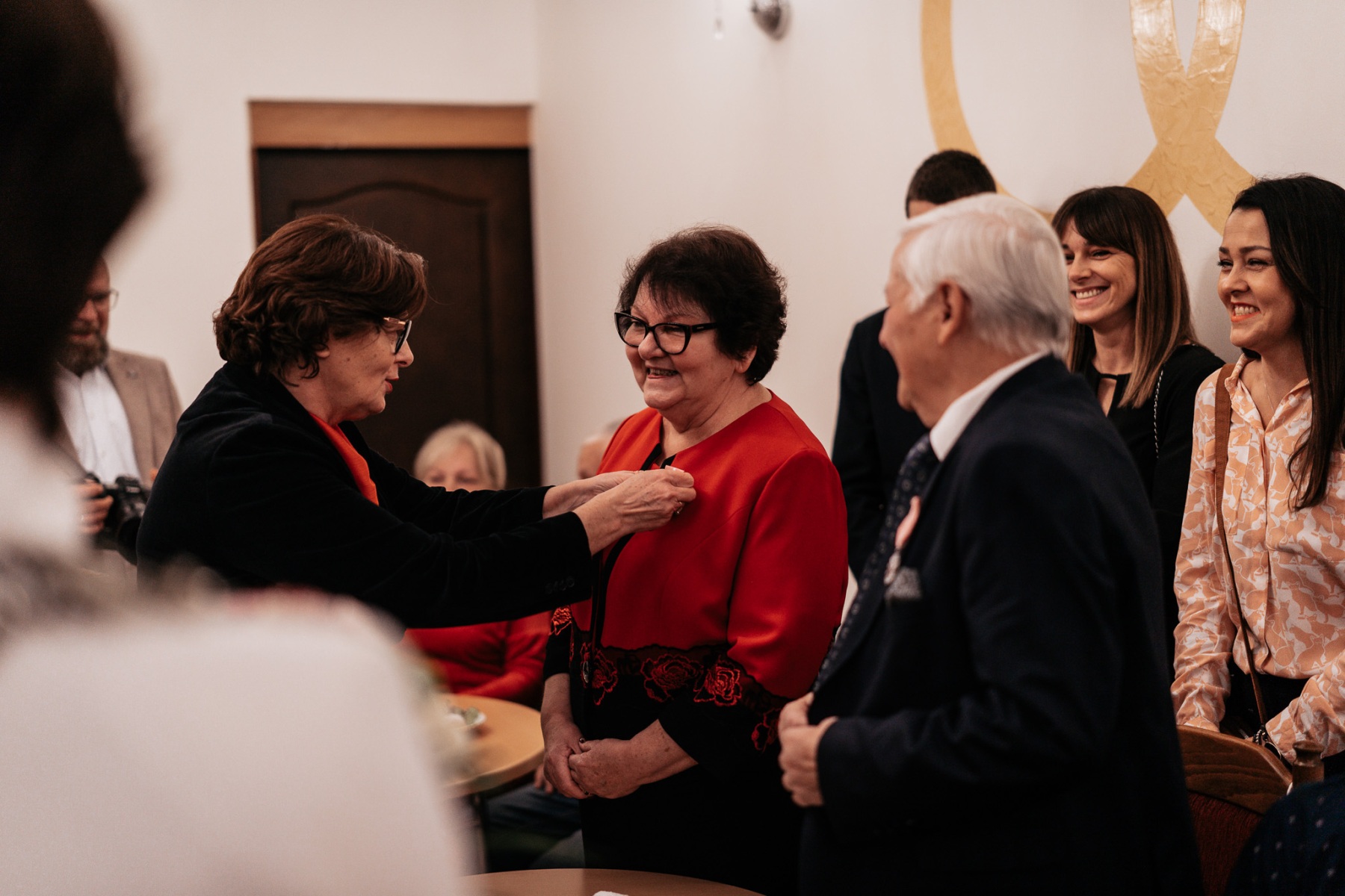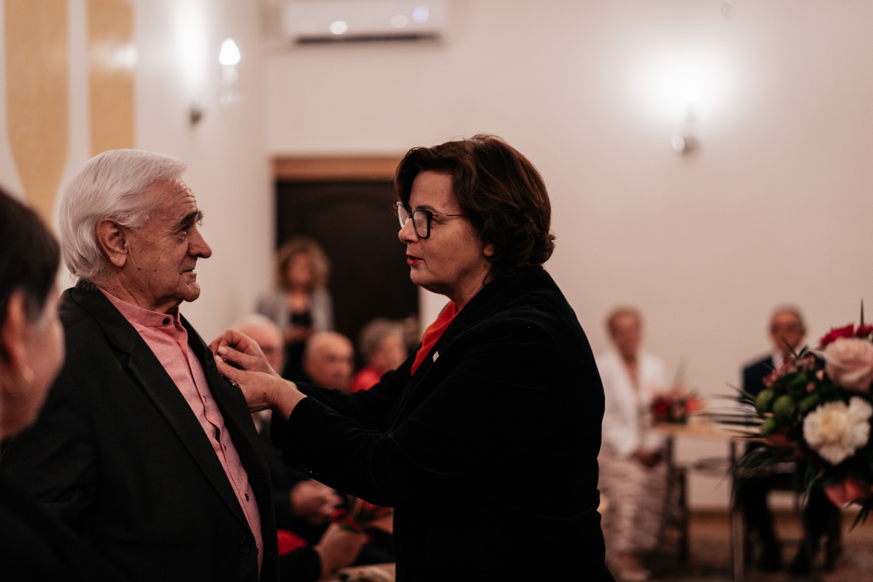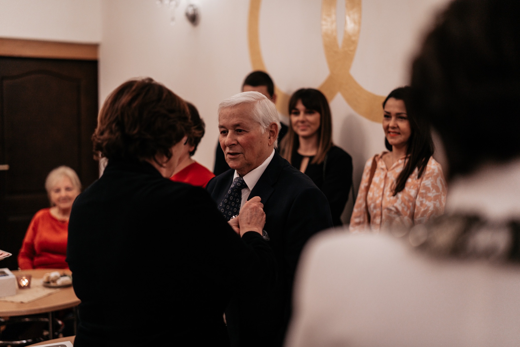 Uroczystość odbyła się w eleganckiej i ciepłej atmosferze, podczas której jubilaci nie kryli wzruszenia. Prezydent Zawiercia, Anna Nemś, w imieniu całego miasta, złożyła serdeczne gratulacje i życzenia zdrowia, pomyślności oraz kolejnych lat w szczęściu i miłości. Podkreśliła wyjątkowy wkład jubilatów w życie rodzinne oraz lokalnej społeczności, zaznaczając, że ich wytrwałość, wzajemne wsparcie i oddanie są prawdziwym przykładem dla młodszych pokoleń.