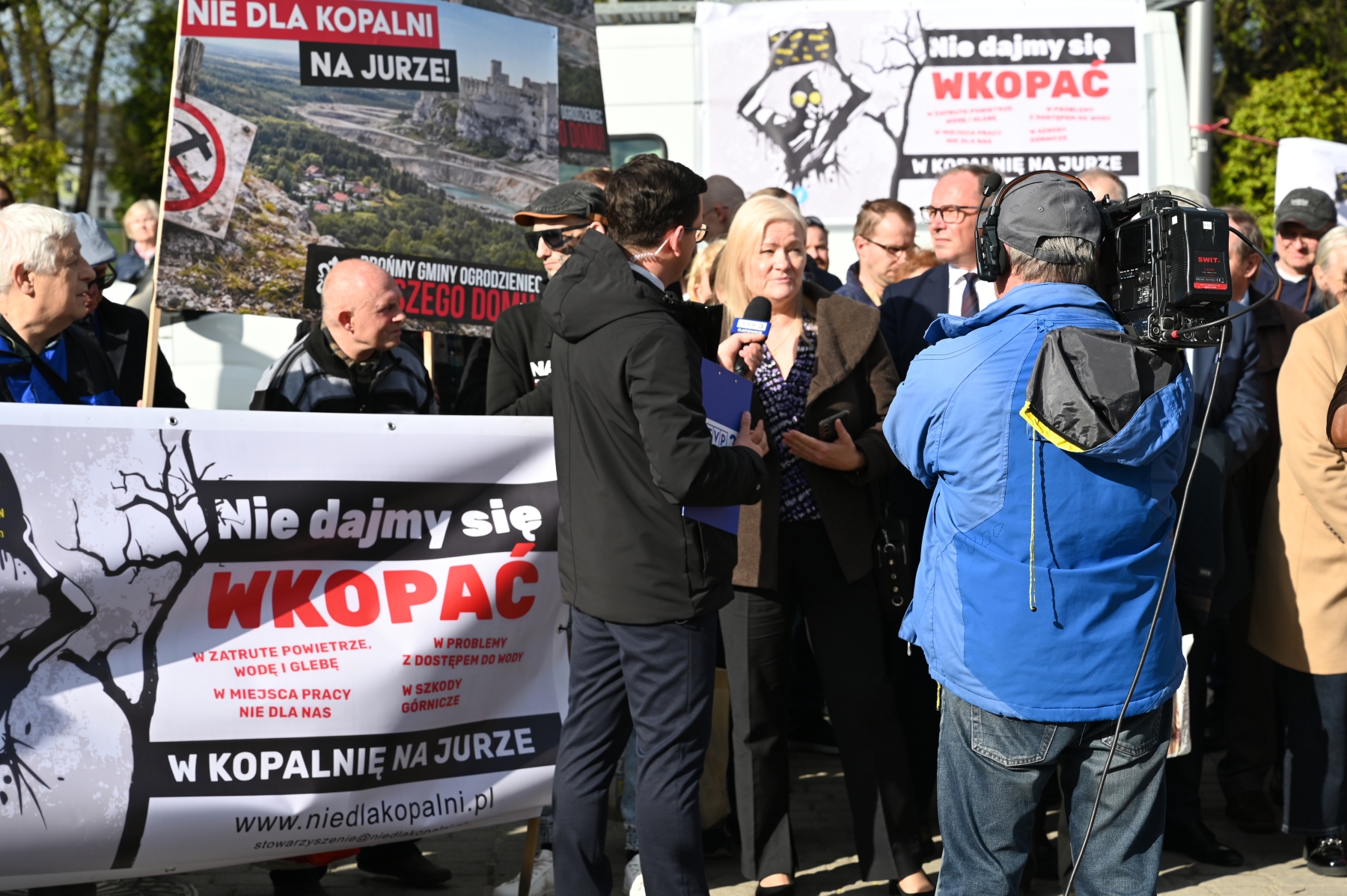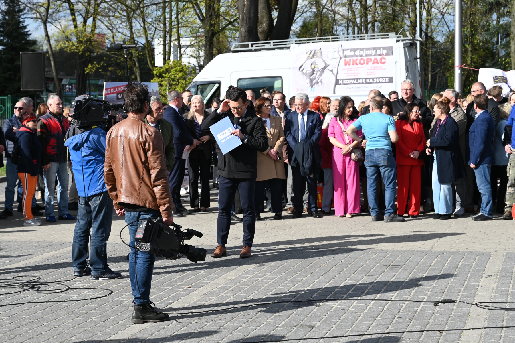 Na parkingu MOK w Zawierciu w czwartek, 23 kwietnia, odbyło się spotkanie związane z reportażem realizowanym przez TVP Katowice. W wydarzeniu udział wzięli przedstawiciele samorządów z całego regionu: Prezydent Miasta Zawiercie Anna Nemś, starosta powiatu zawierciańskiego Teresa Popiel-Mucha, burmistrzowie ościennych gmin, przewodnicząca Rady Miasta wraz z radnymi, a także osoby od lat zaangażowane w sprzeciw wobec planów uruchomienia kopalni cynku i ołowiu na Jurze Krakowsko-Częstochowskiej.