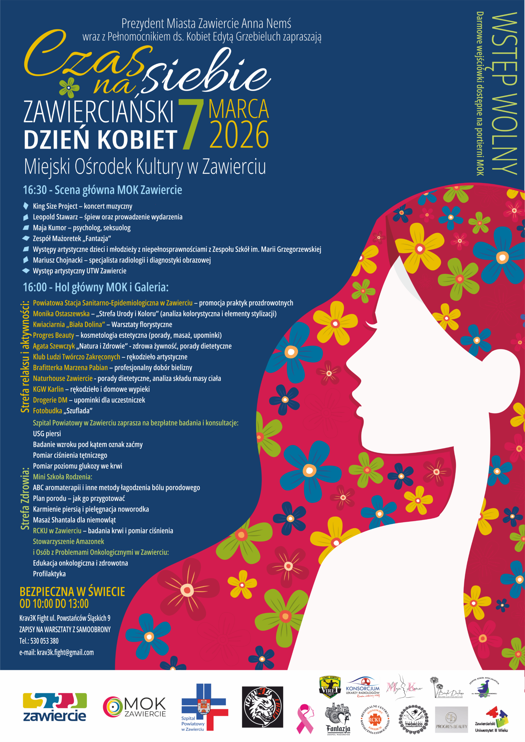 Prezydent Miasta Zawiercie Anna Nemś wraz z Pełnomocniczką ds. Kobiet Edytą Grzebieluch zapraszają mieszkanki miasta i okolic na kobiety na wyjątkowe święto. Zawierciański dzień kobiet – „Czas na siebie”. To wydarzenie, które łączy troskę o bezpieczeństwo, zdrowie i rozwój osobisty z relaksem, inspiracją oraz wspólnym świętowaniem w atmosferze kobiecej solidarności.