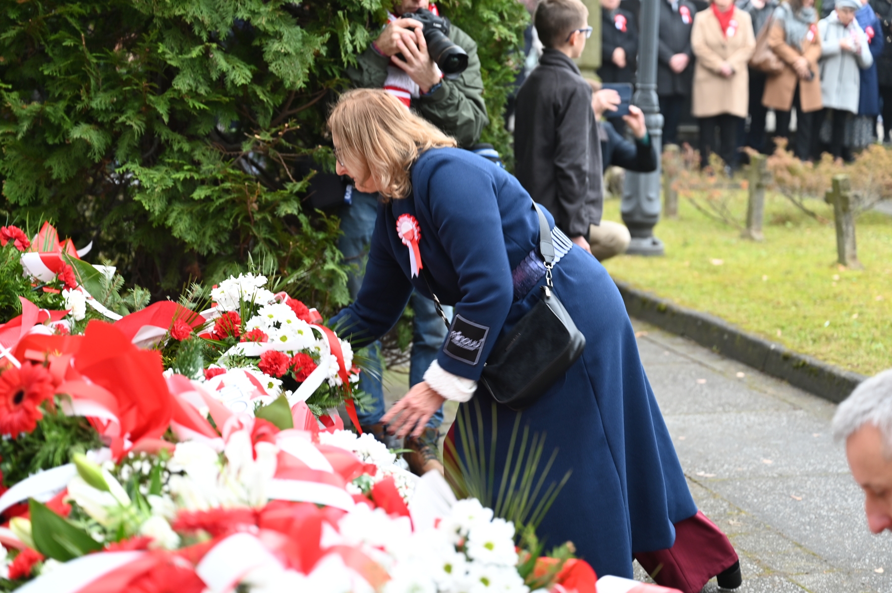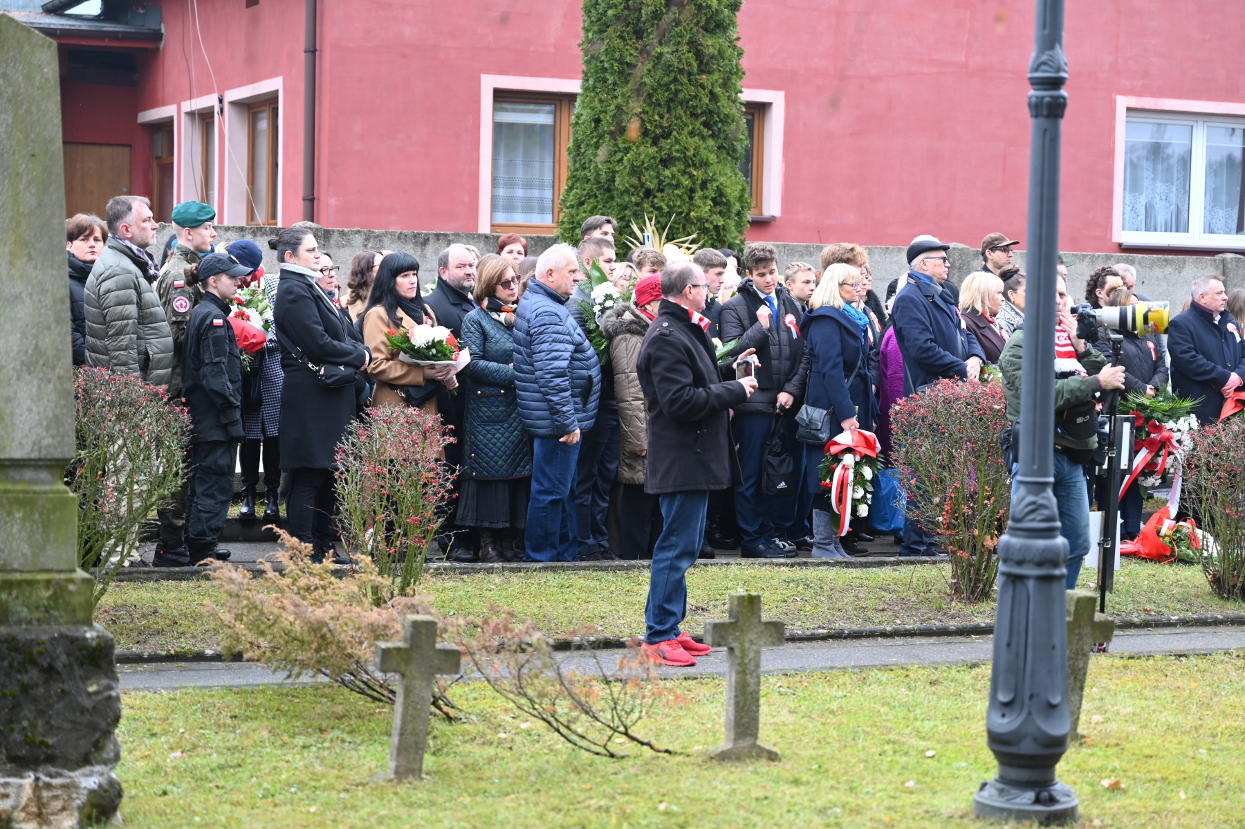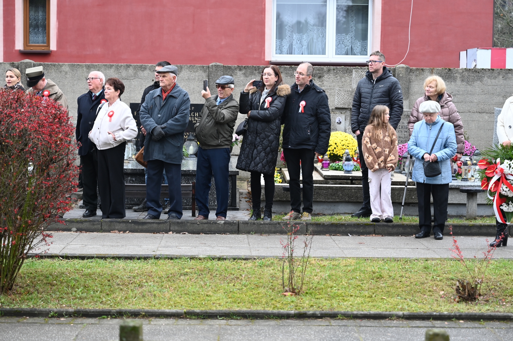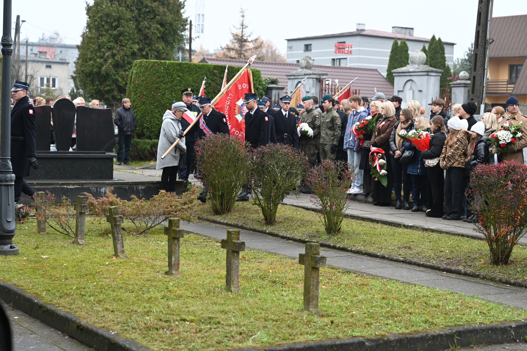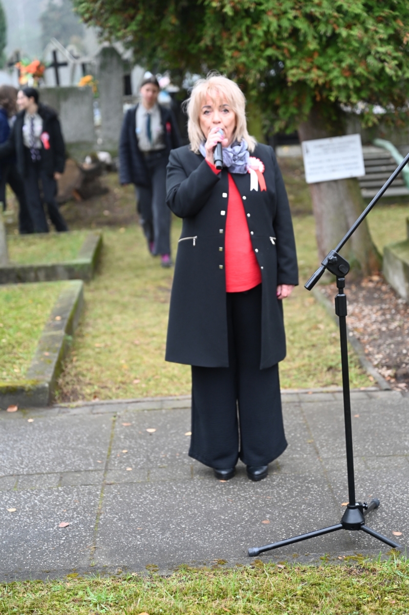 Po zakończeniu nabożeństwa uczestnicy przemaszerowali w uroczystym pochodzie na cmentarz parafialny, gdzie odbył się tradycyjny „Pokłon Niepodległej” – główna część obchodów przy Pomniku Niepodległości.
